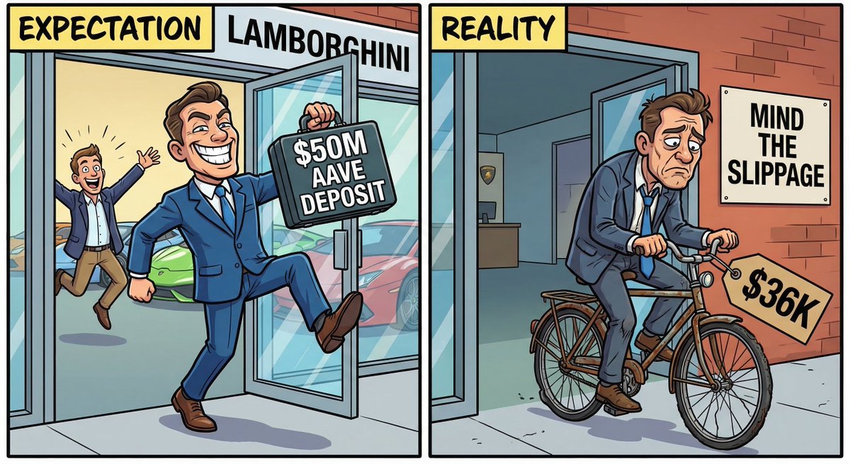 Someone just walked $50M into AAVE and walked out with $36K. Not a hack. Not a rug. Just vibes and slippage. https://t.co/JV5PGmHSm6 https://t.co/VZHYa0IpCv